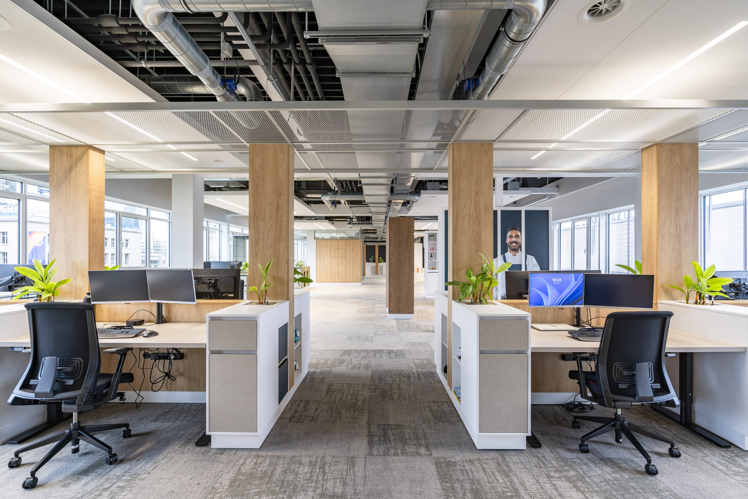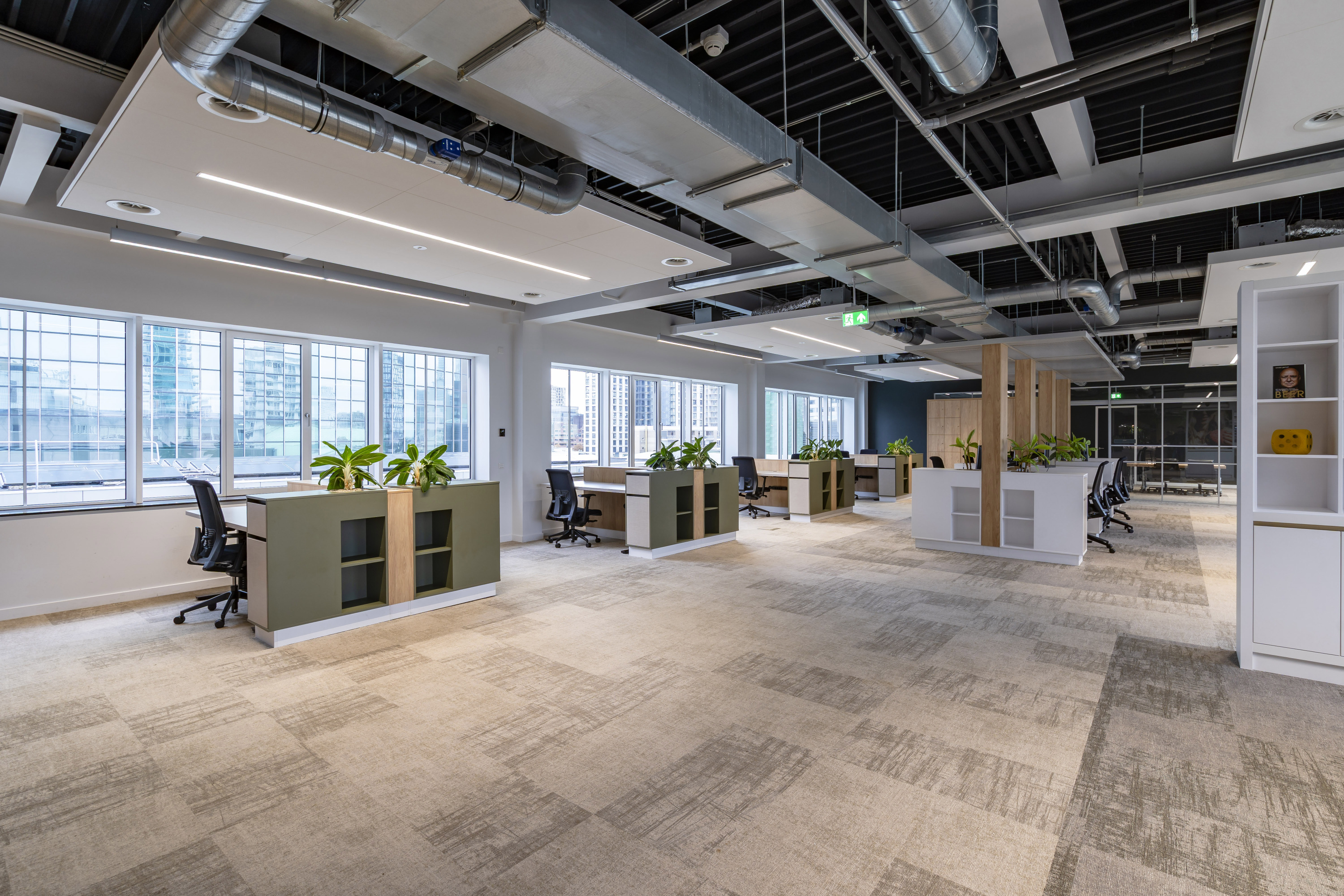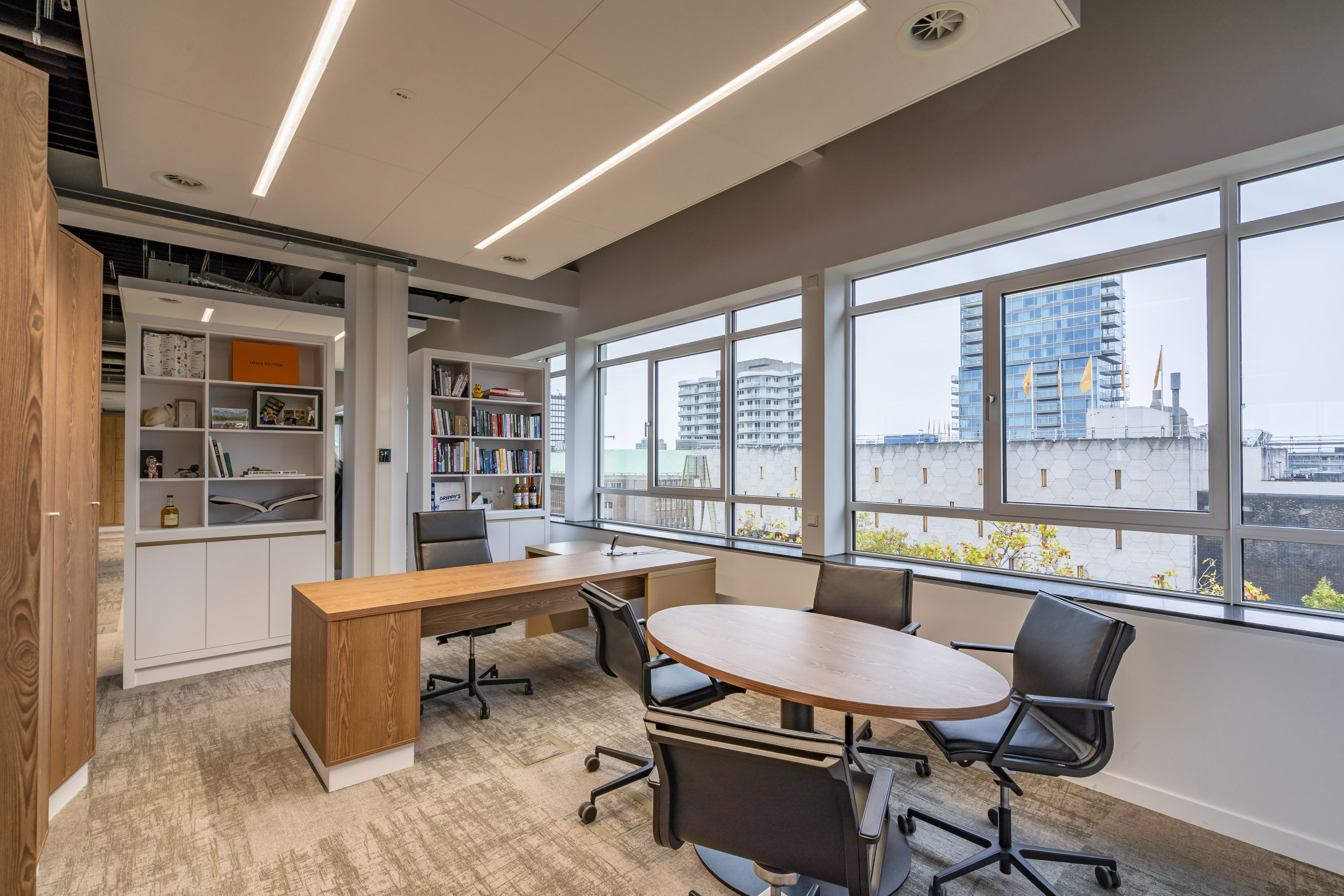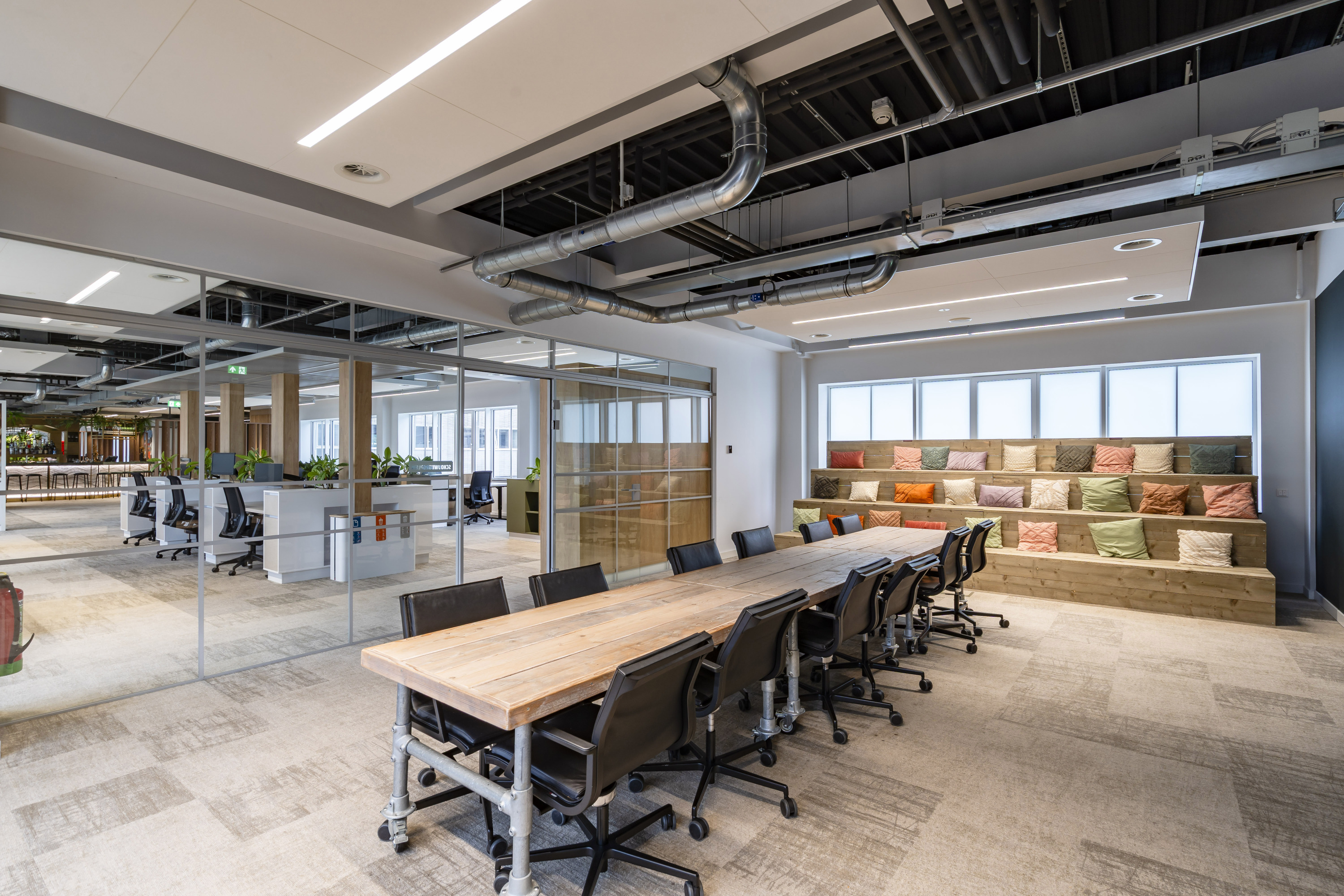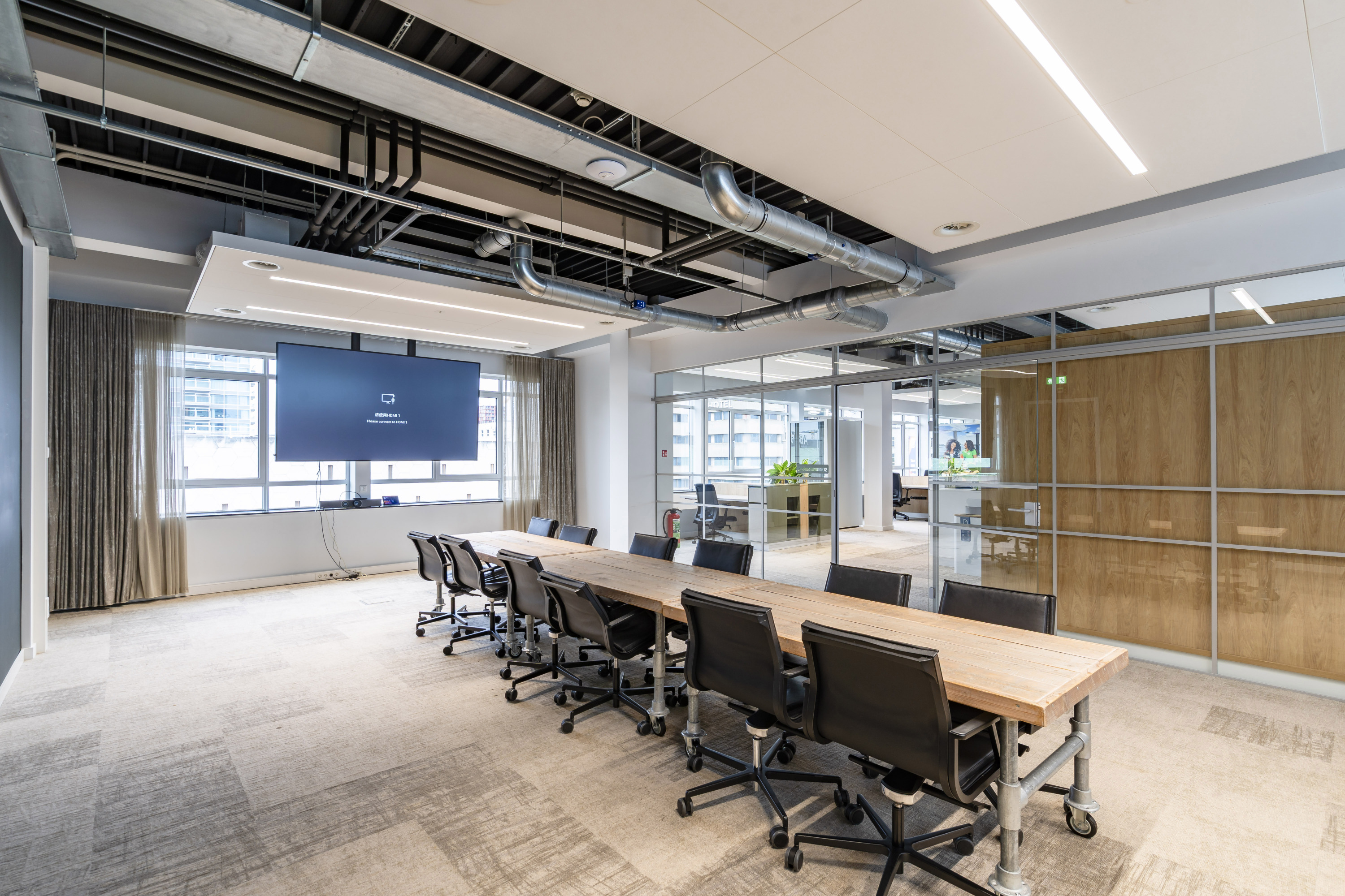 – Inbouwpakket bestaande uit ca. 72 werkplekken, afgesloten vergaderruimten en boardroom;