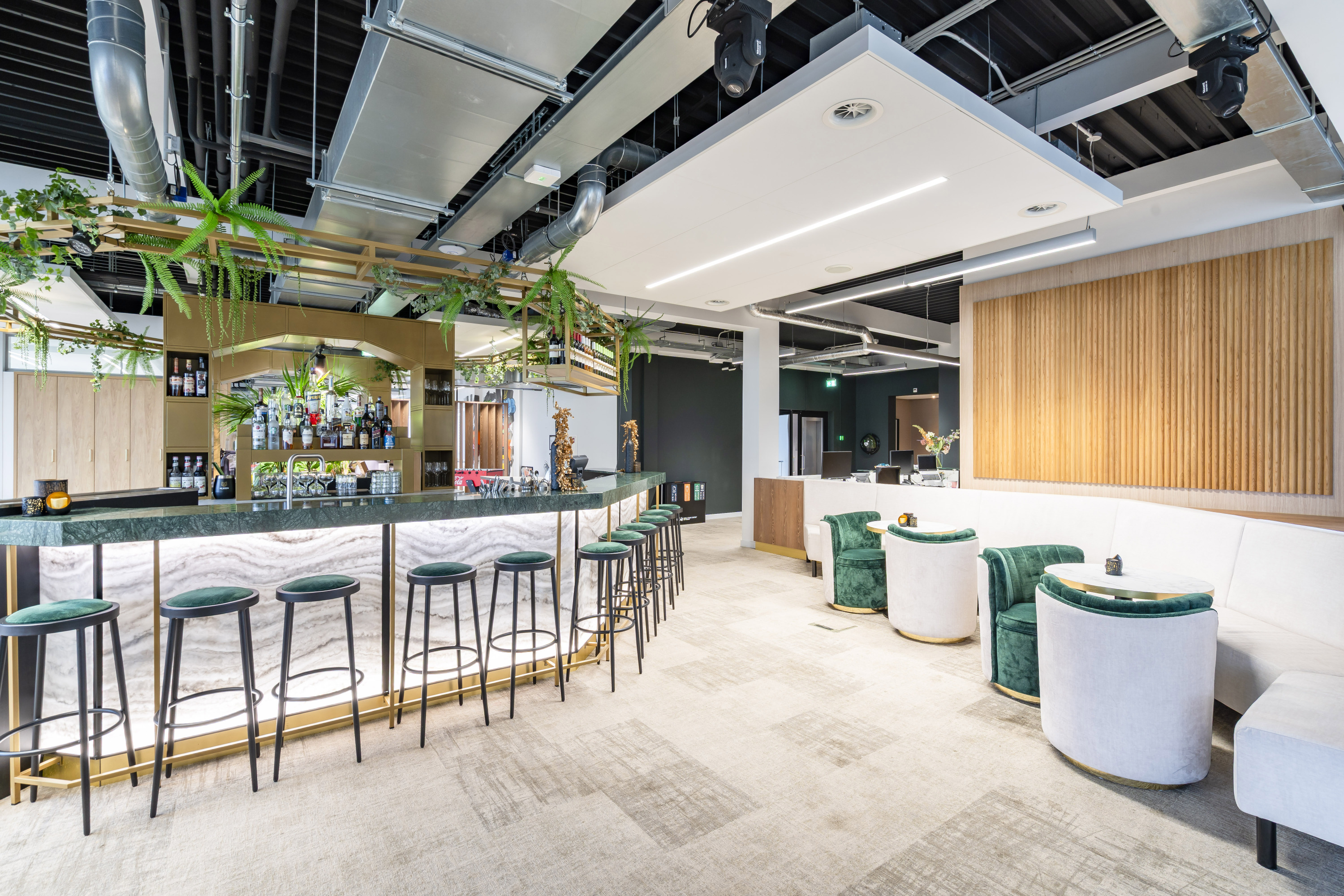 Het inbouwpakket is in 2022 geplaatst door een professionele inrichter met oog voor detail. De ruimte kenmerkt zich door de extra vrije hoogte en eigen sanitaire voorzieningen. Op de verdieping is deze hoogte extra benadrukt door de klimaatplafondeilanden voorzien van ledverlichting en fancoilunits ten behoeve van klimaatbehandeling.
