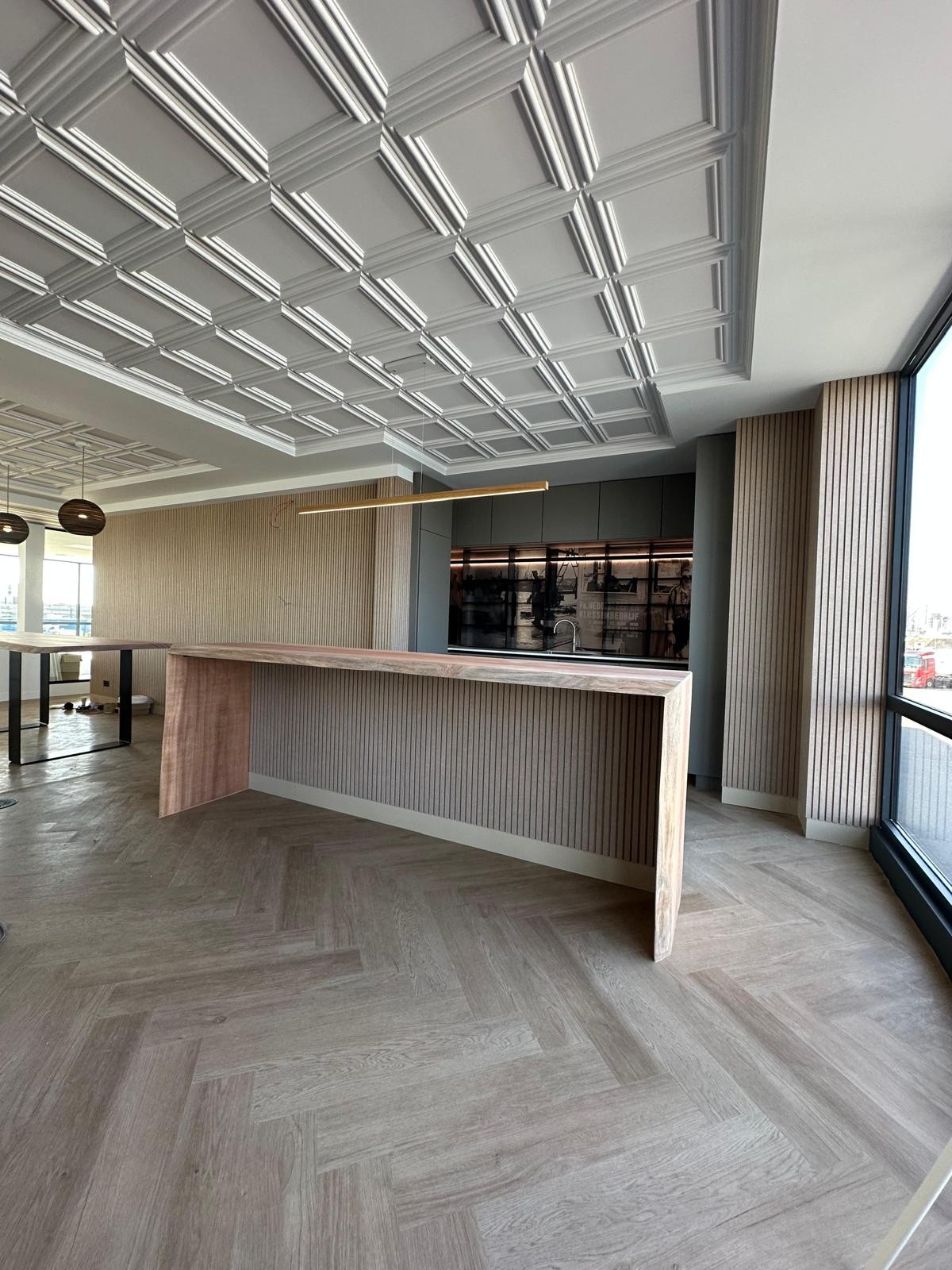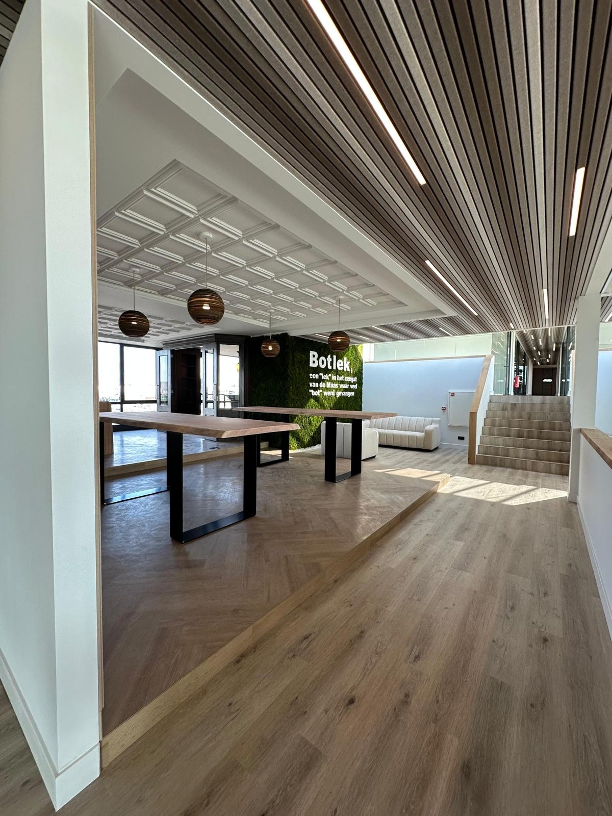 – industriële plafonds v.v. houten afwerking en ledverlichting;