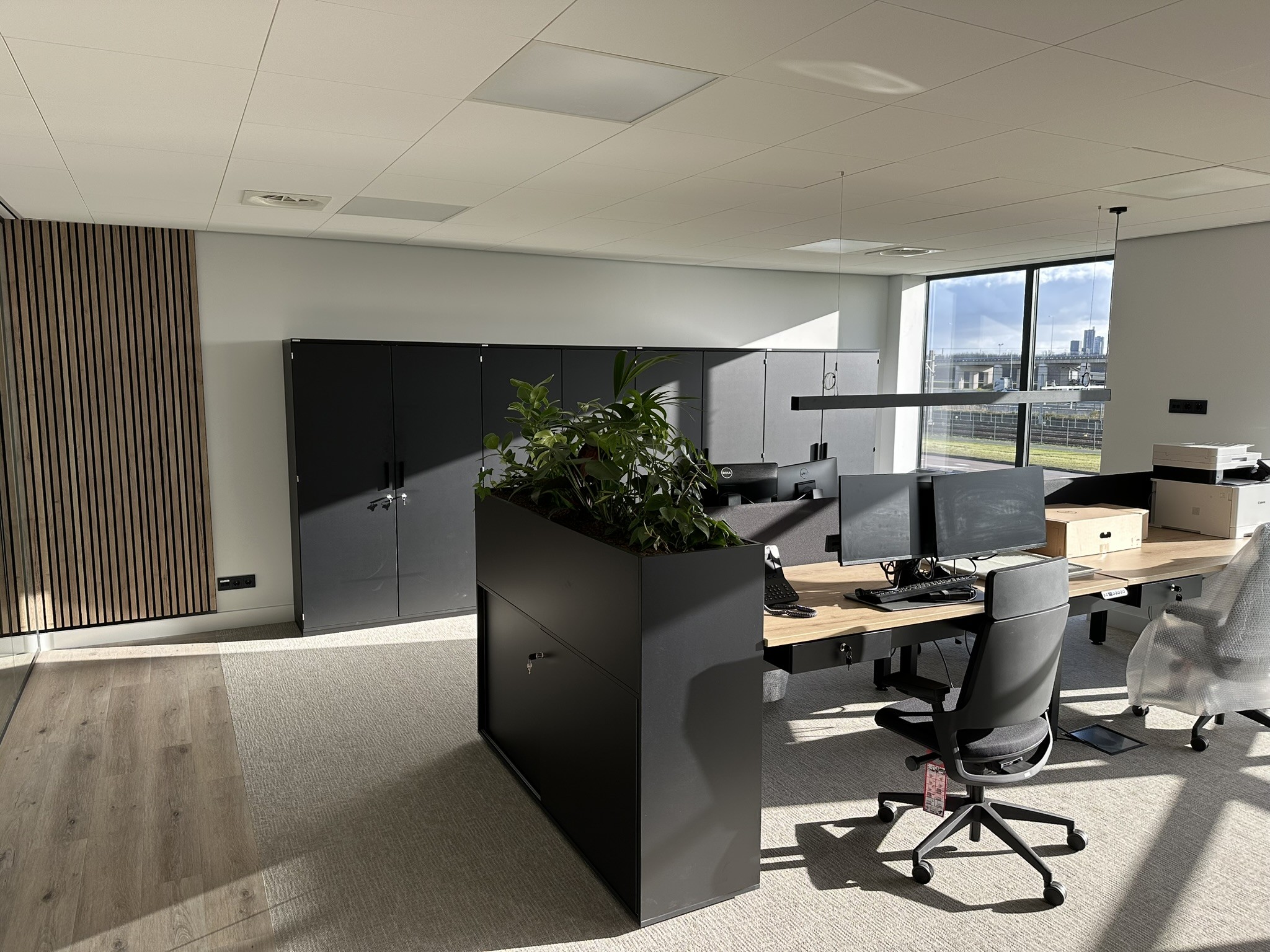 De recent gerenoveerde hoogwaardig afgewerkte kantoorruimten zijn gelegen op de 1e verdieping, hebben een industriële uitstraling, worden hoogwaardig afgewerkt en turnkey opgeleverd o.a. voorzien van vloer- wand en plafondafwerking, glazen scheidingswanden, airco-split-units, mechanische ventilatie en ledverlichting. Door het servicepakket dat u wordt aangeboden wordt u (nagenoeg) volledig ontzorgt. Zo kunt u onder andere gebruikmaken van de gezamenlijke vergaderruimte en kantine waar de koffie en thee voor u klaar staan, wordt uw kantoorruimte dagelijks schoongemaakt en is er een glasvezelinternetverbinding voor u beschikbaar.