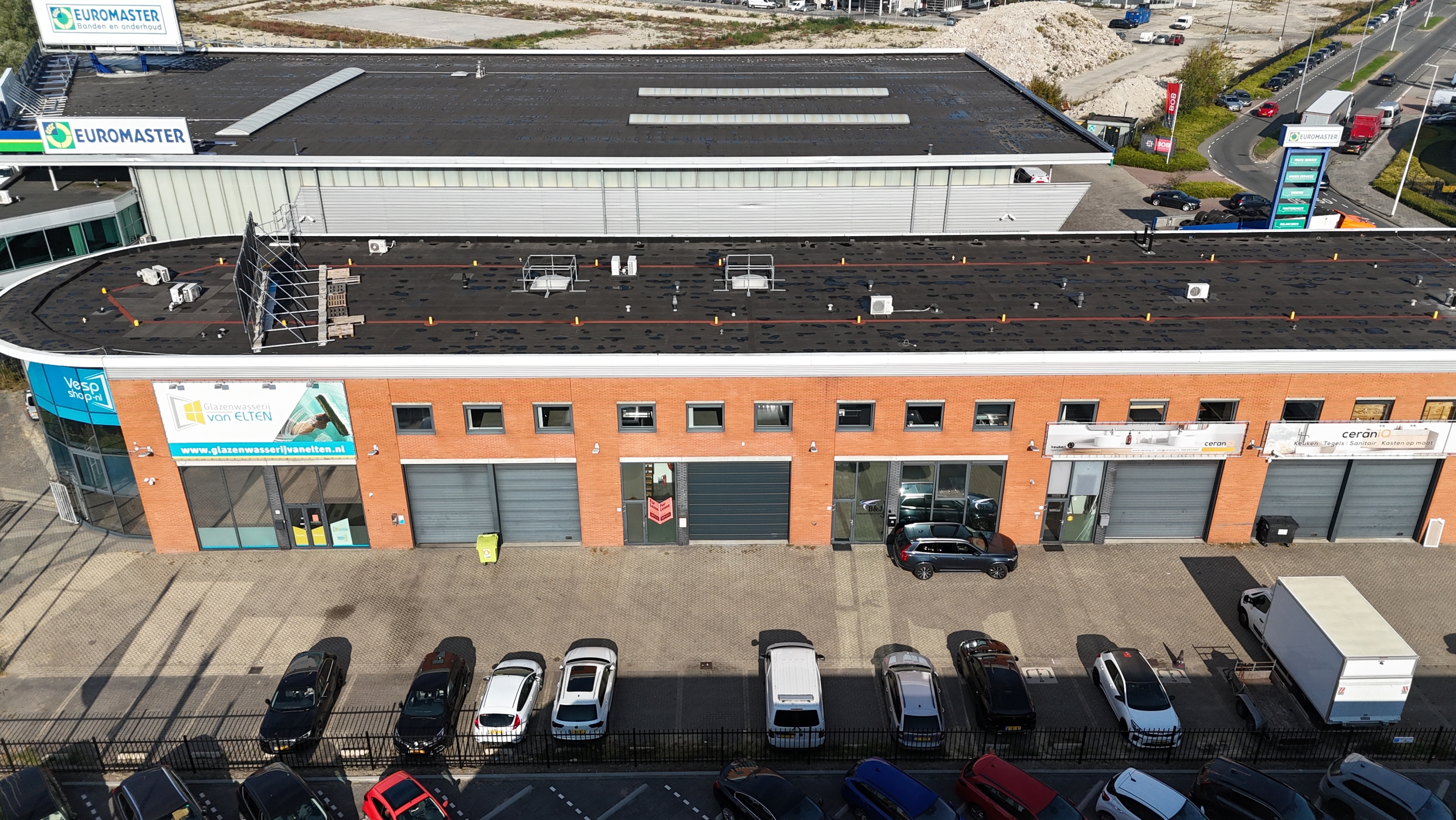 – Geïsoleerd staaldak met bitumineuze dakbedekking;