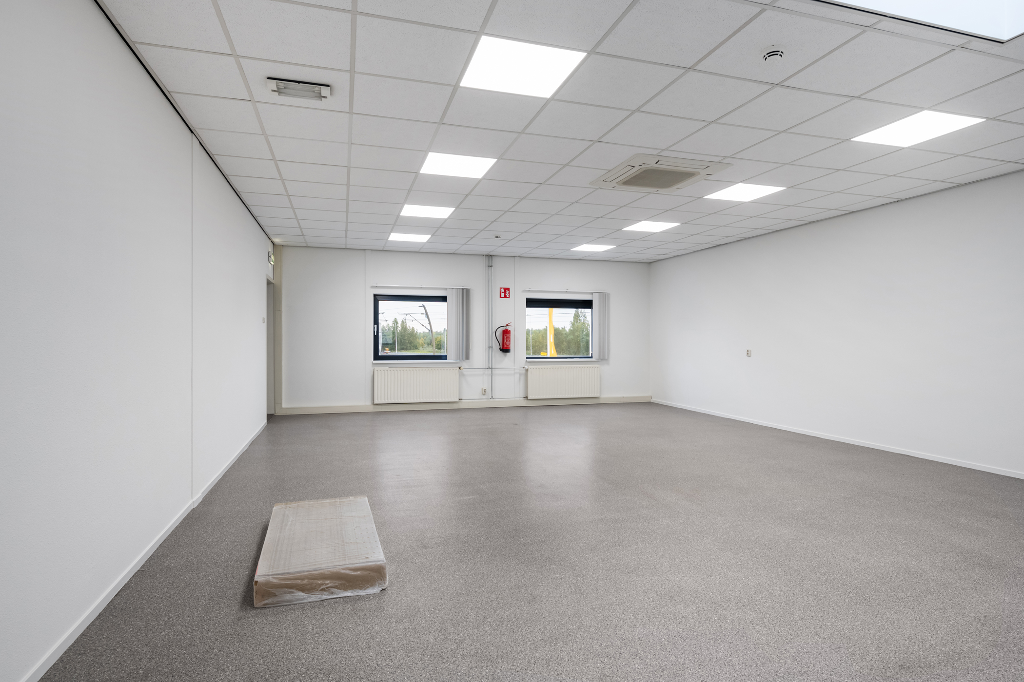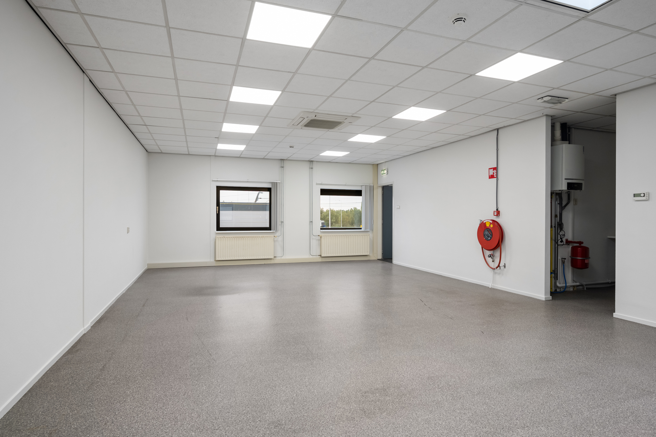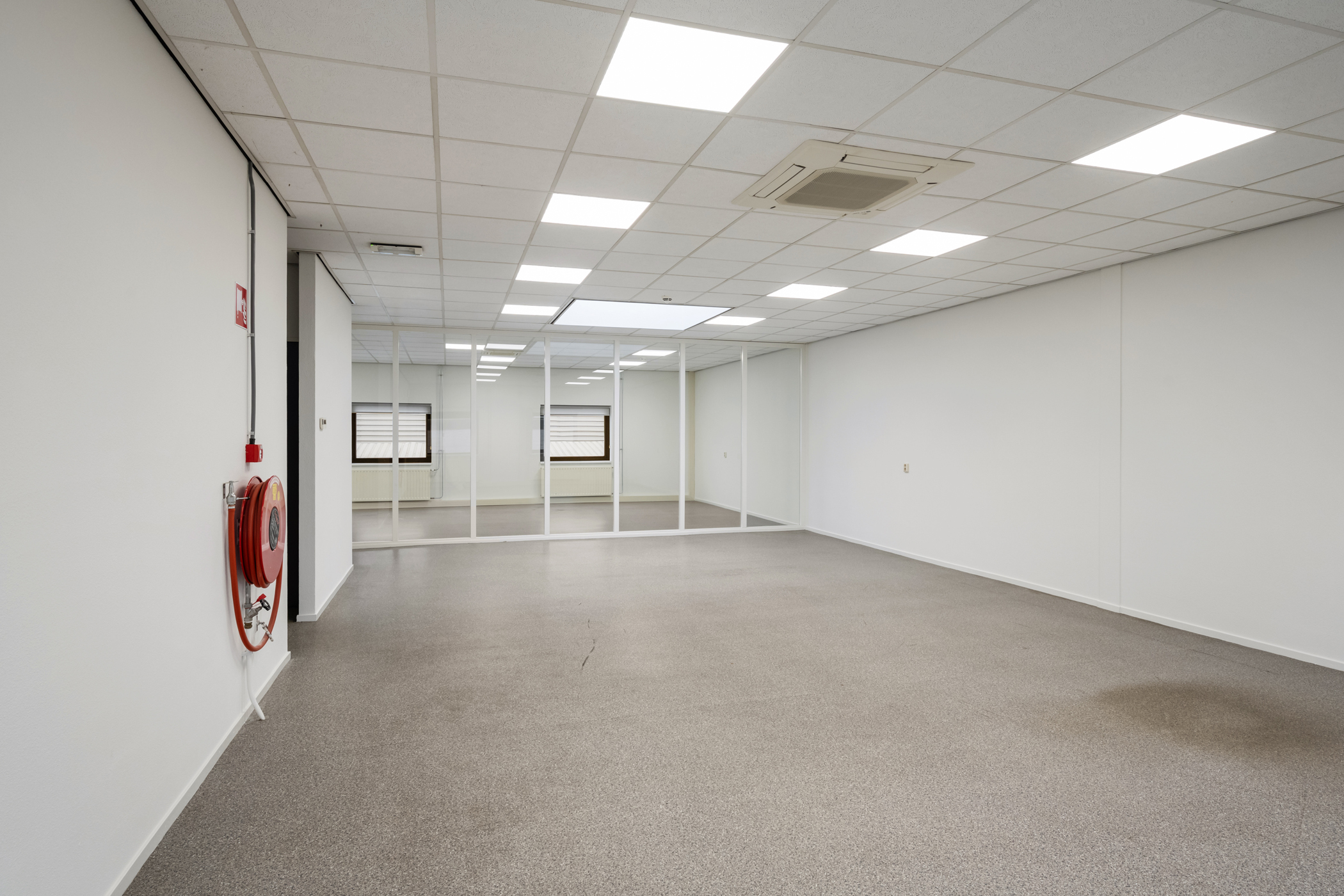 De kantoorruimte beschikt over ruim voldoende raampartijen in zowel de voor- en achtergevel, glazen scheidingswanden, een keurige betegelde toiletgroep (M/V), wandcontactdozen en plaatradiatoren aangesloten op de cv-installatie.