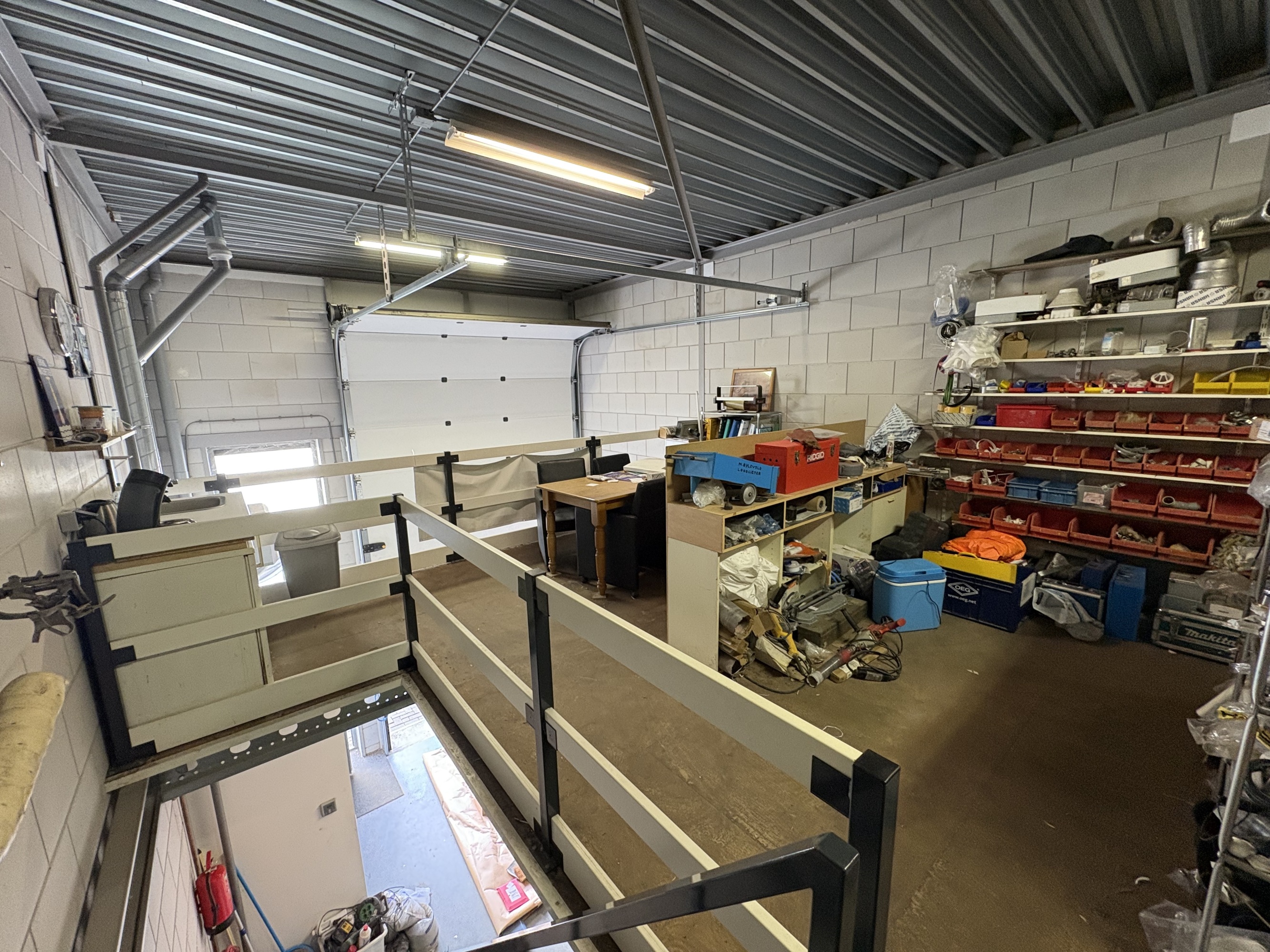 De bedrijfsunit is o.a. voorzien van een overheaddeur (3,30m breed, 4,5m hoog), een separate loopdeur, een monolithisch afgewerkte betonvloer met een max. vloerbelasting van 1.500 kg/m², verlichtingsarmaturen, verwarming, betegelde toiletruimte. De vrije hoogte in de bedrijfsruimte bedraagt ca. 6,50 meter onder de staalconstructie en 2,95 meter onder de entresolvloer.