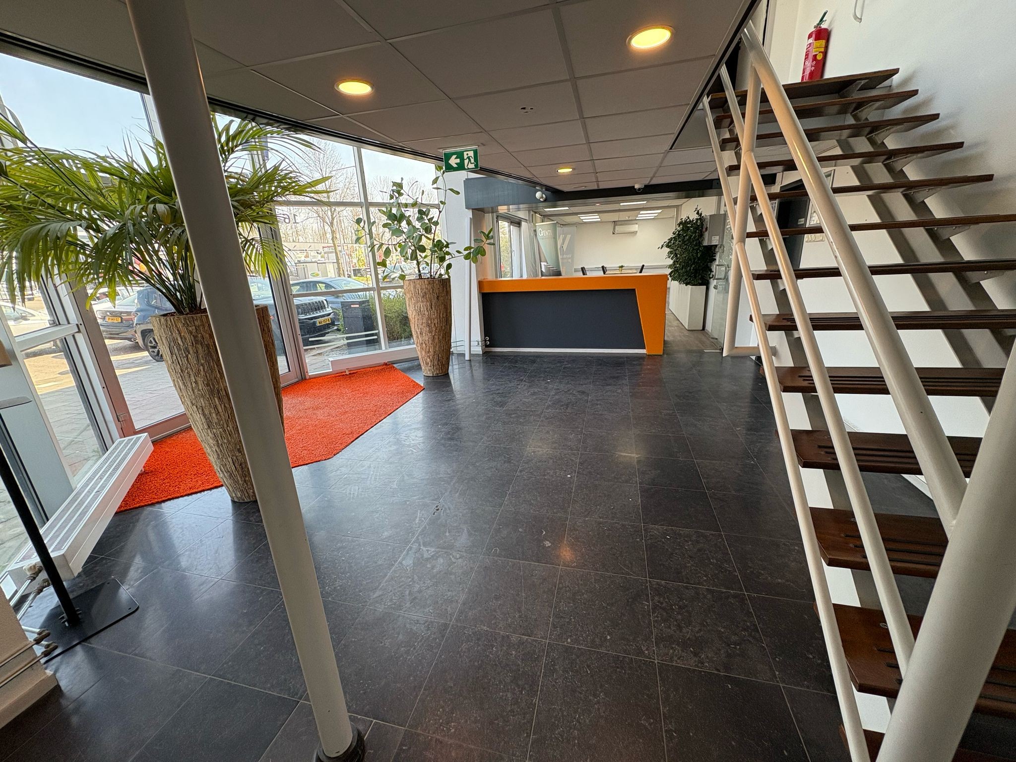 – indeling begane grond: entree/ontvangsthal met receptieruimte en trapopgang naar de 1e en 2de verdieping;