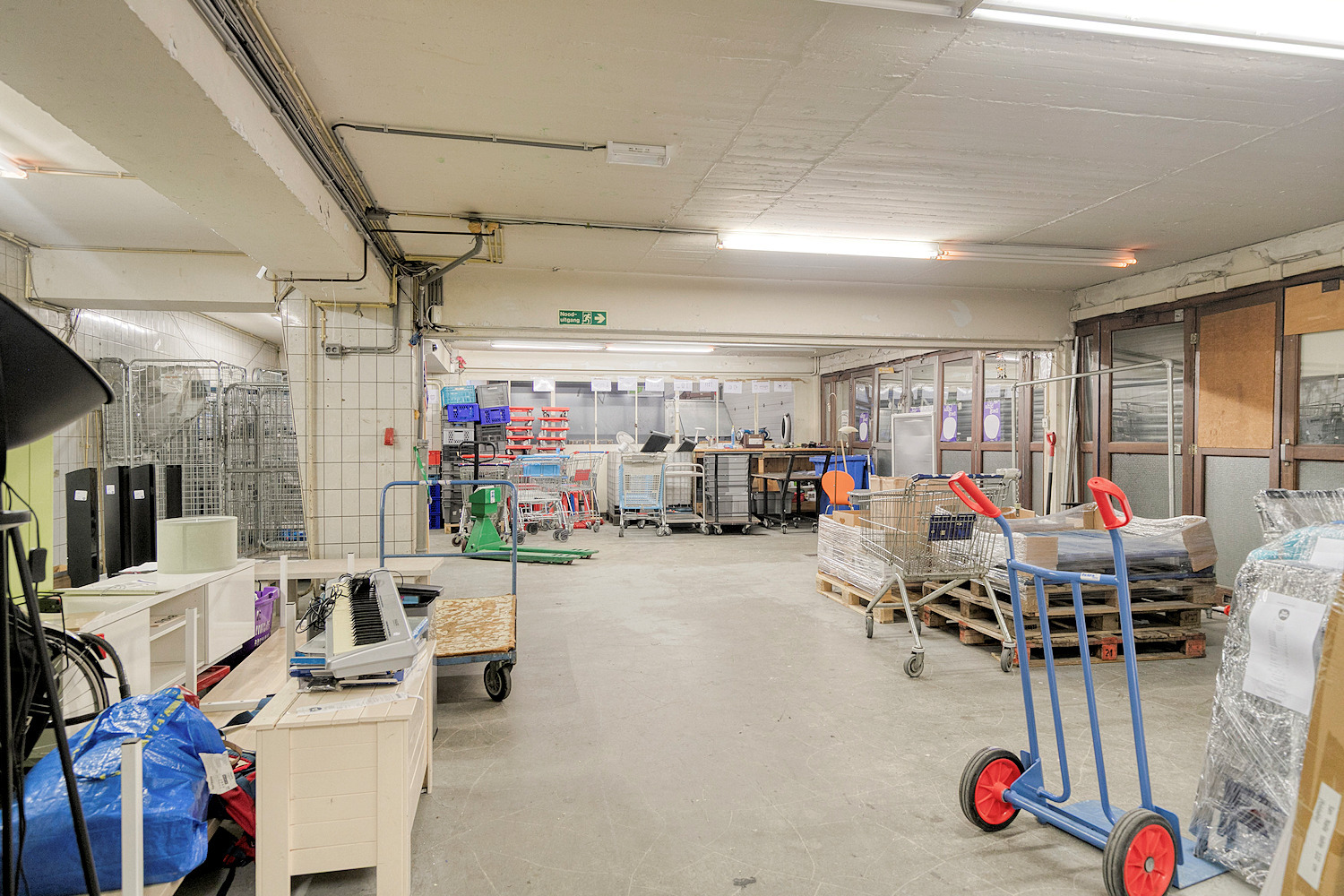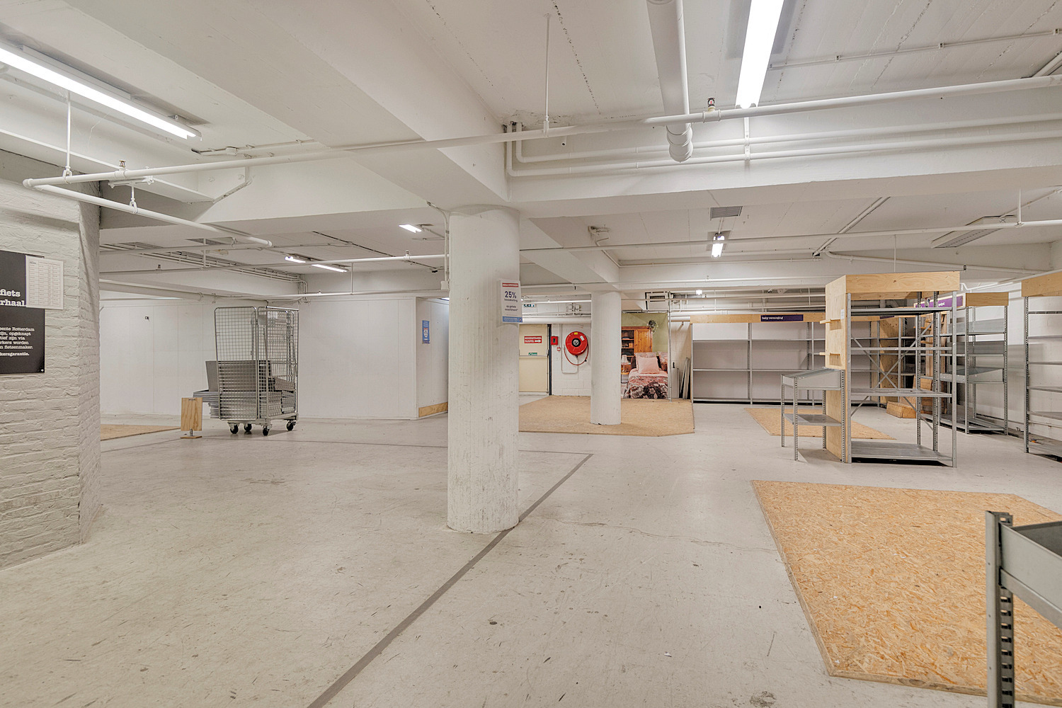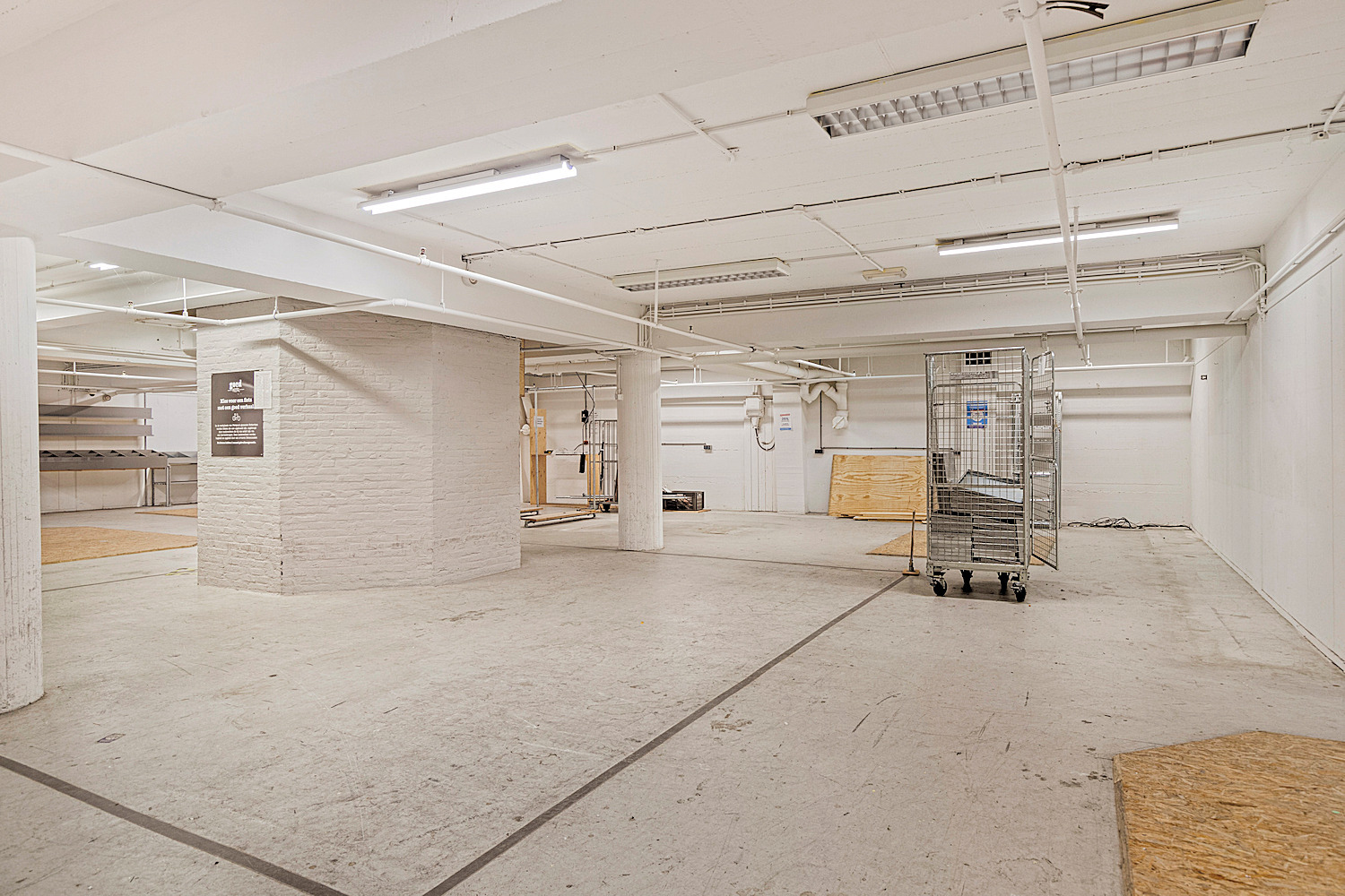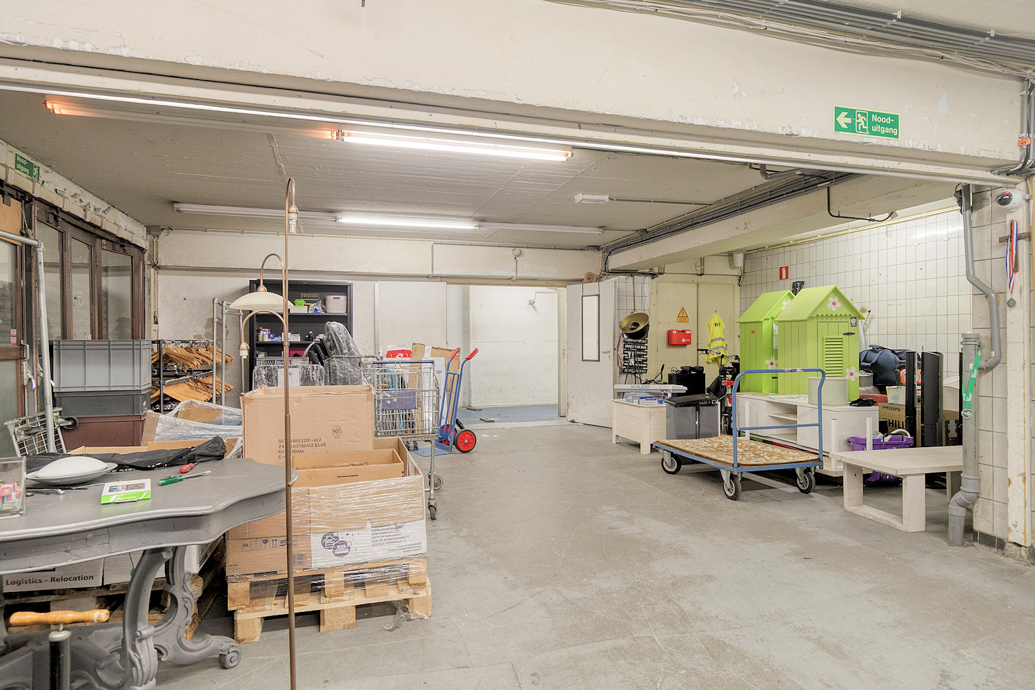 KELDER (groot 658 m2): te bereiken via overheaddeur Pannekoekstraat 92 en via trap en goederenlift. Deze ruimte is geschikt voor (deels) parkeerruimte voor personenauto’s, verkoopruimte, showroom, opslagruimte