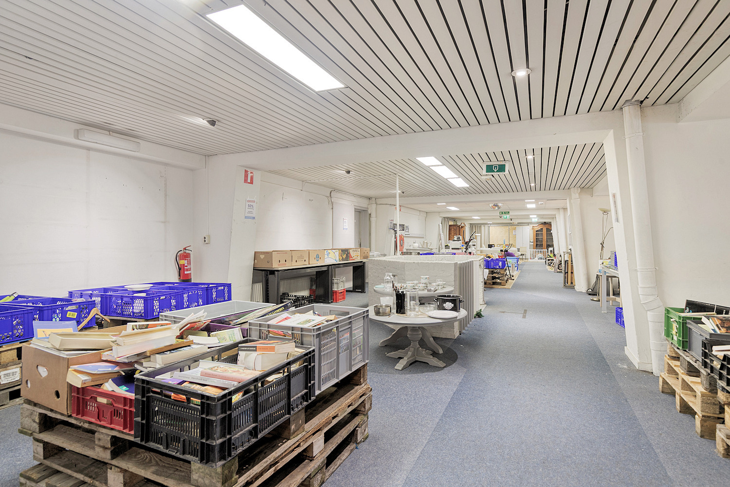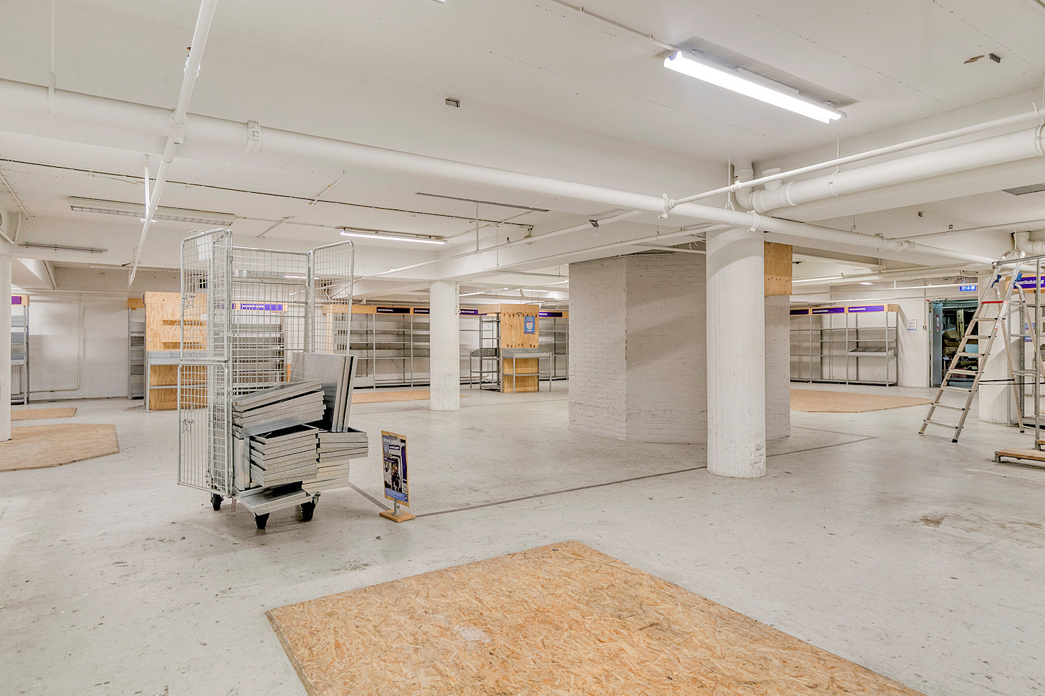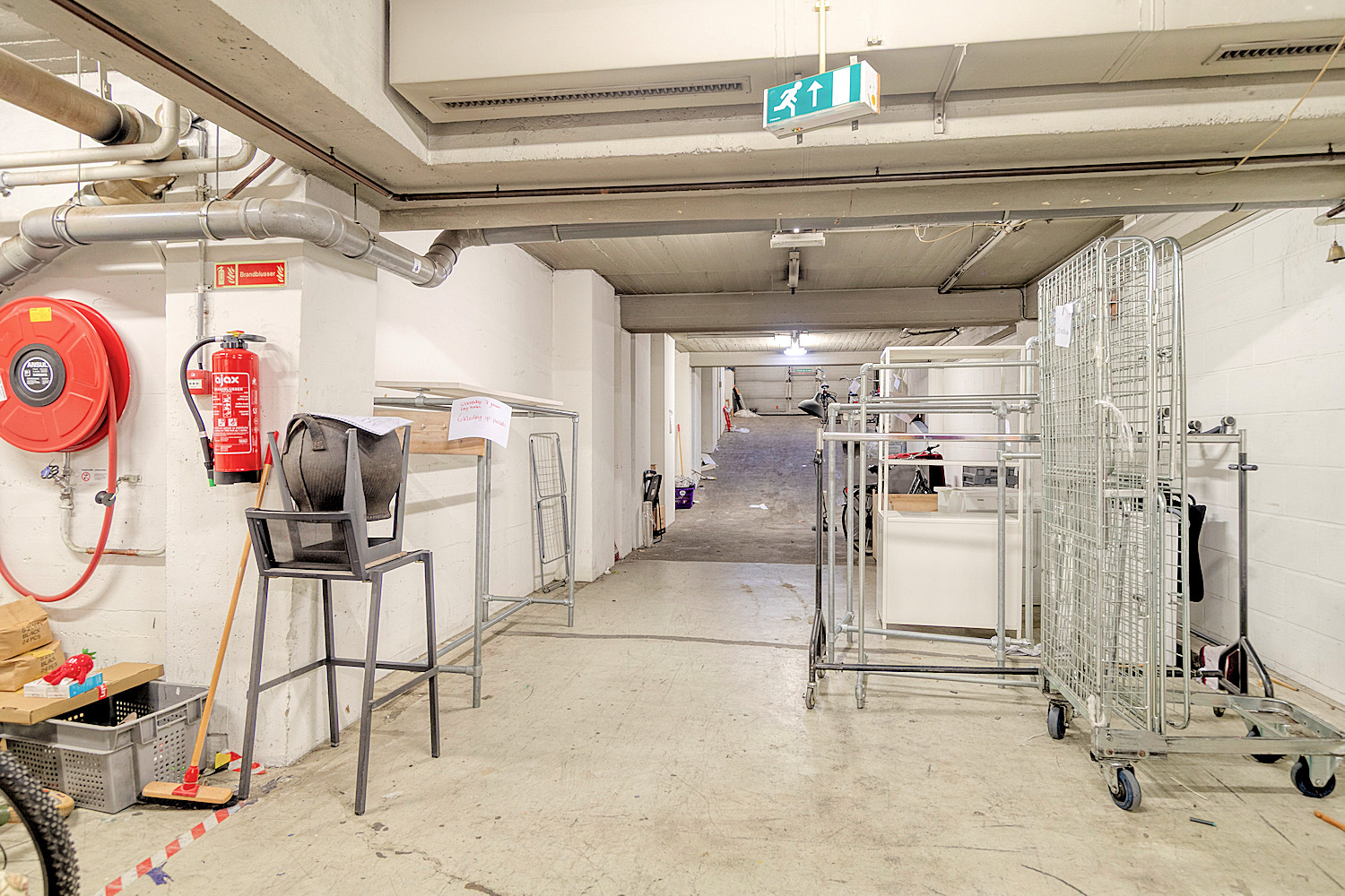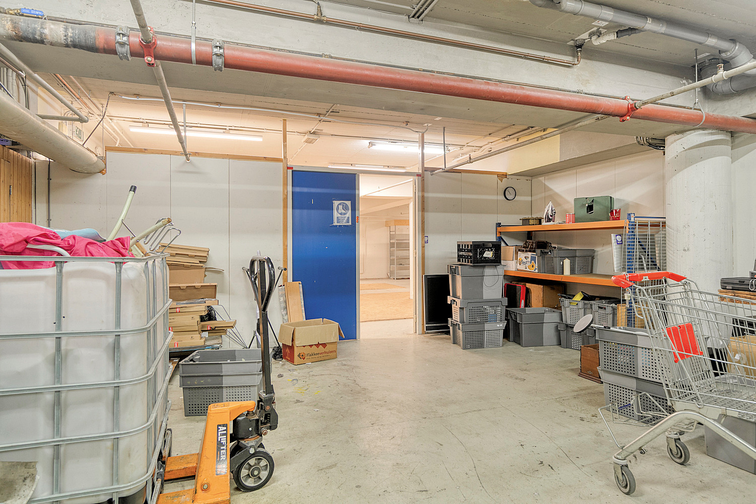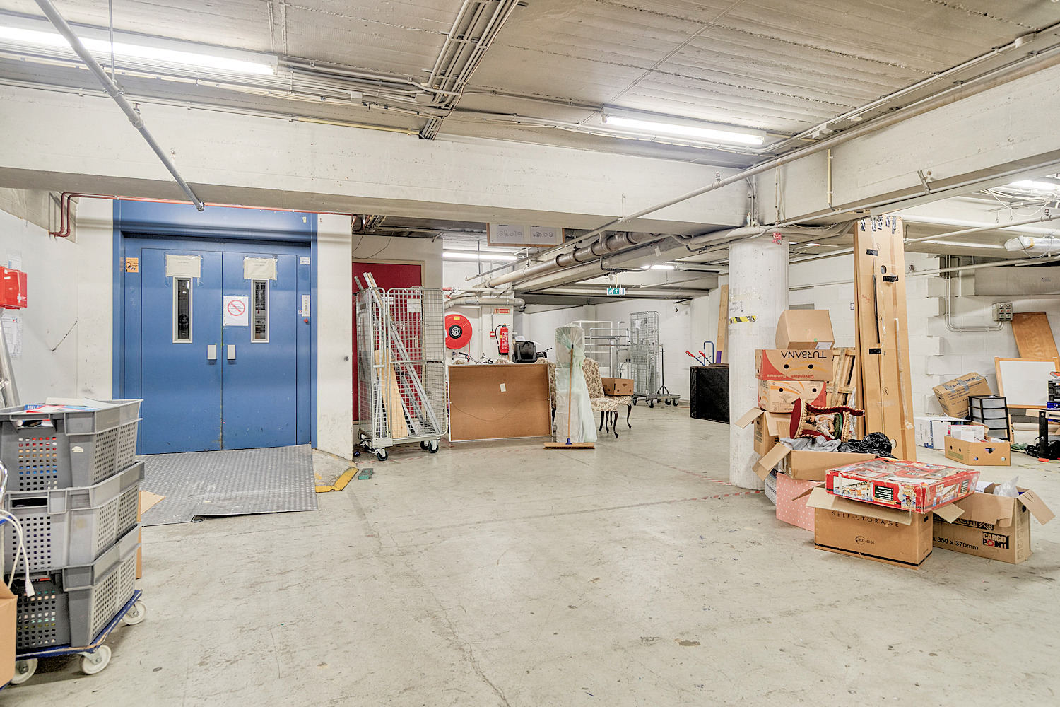 KELDER (groot 658 m2): te bereiken via overheaddeur Pannekoekstraat 92 en via trap en goederenlift. Deze ruimte is geschikt voor (deels) parkeerruimte voor personenauto’s, verkoopruimte, showroom, opslagruimte