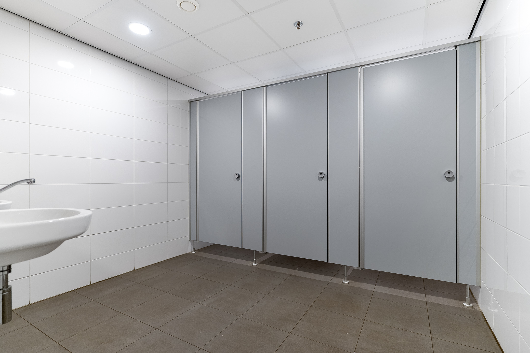 – Gezamenlijk herentoilet v.v. een drietal toiletten met een gezamenlijk voorportaal met handwasbak;