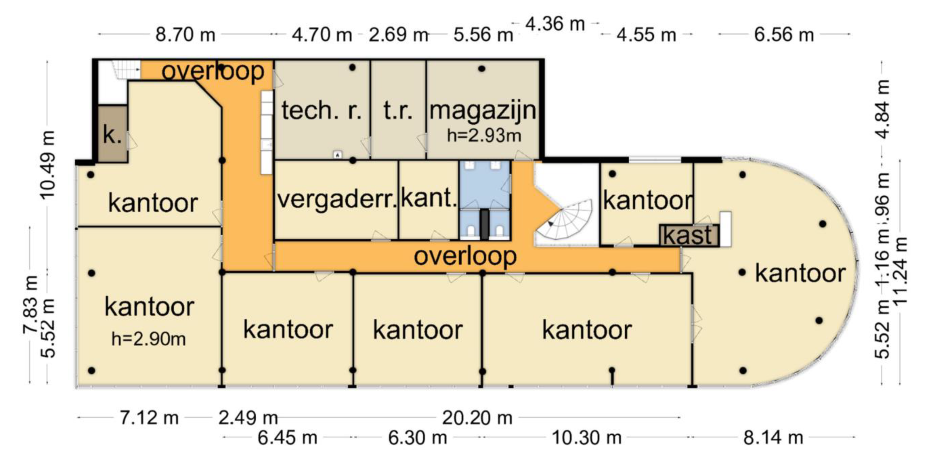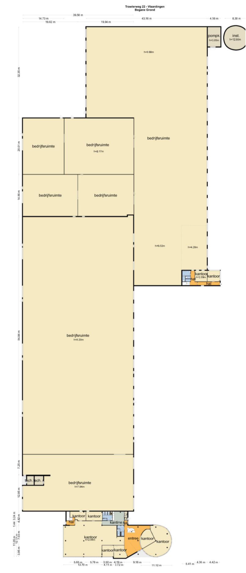 – Vrije hoogte van circa 7.5 en 11.5 meter