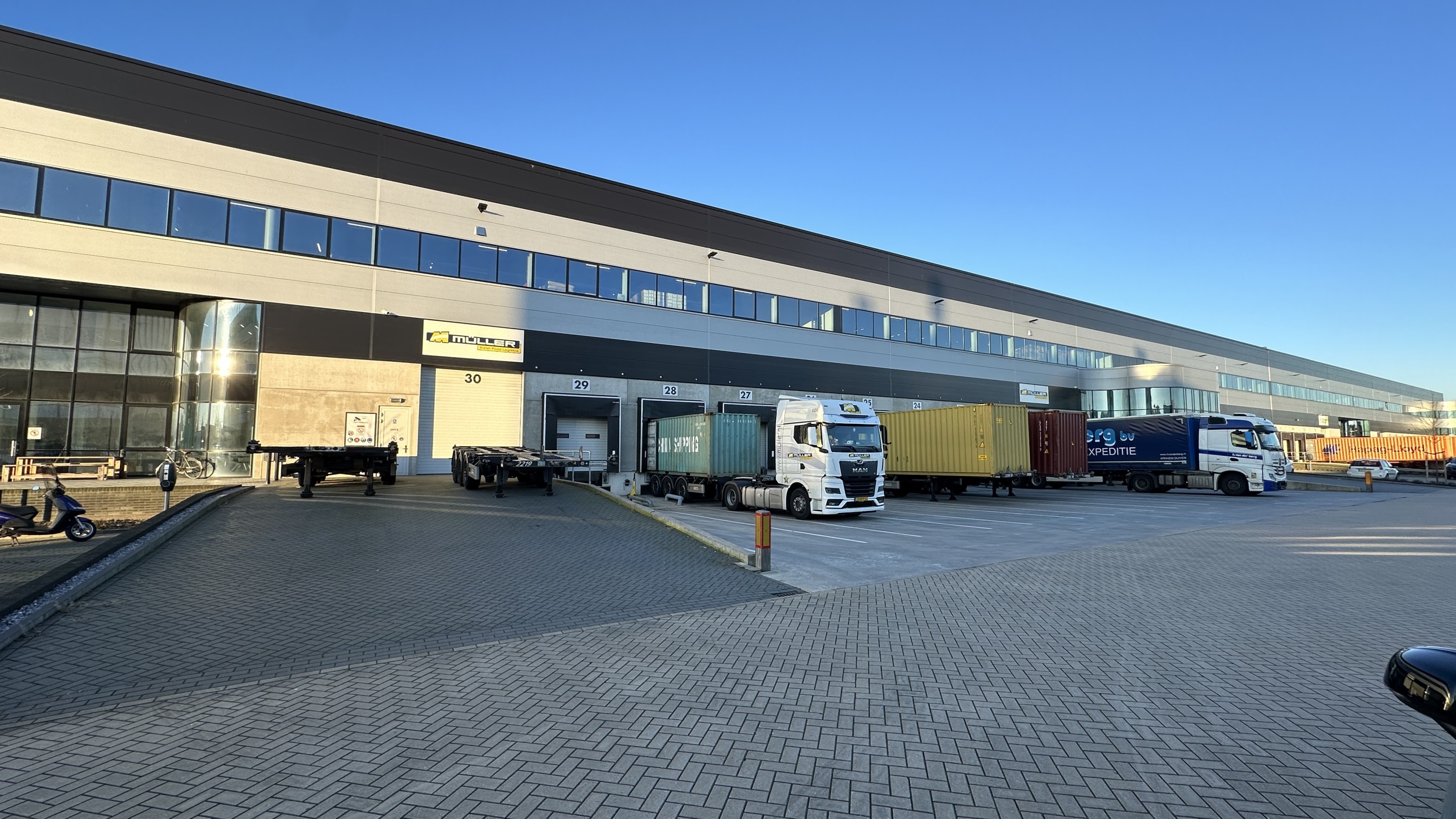 – 4 loading docks met overheaddeuren (3,2 x 3,2 m) v.v. elektro-hydraulische docklevellers met max. belasting van 9.000