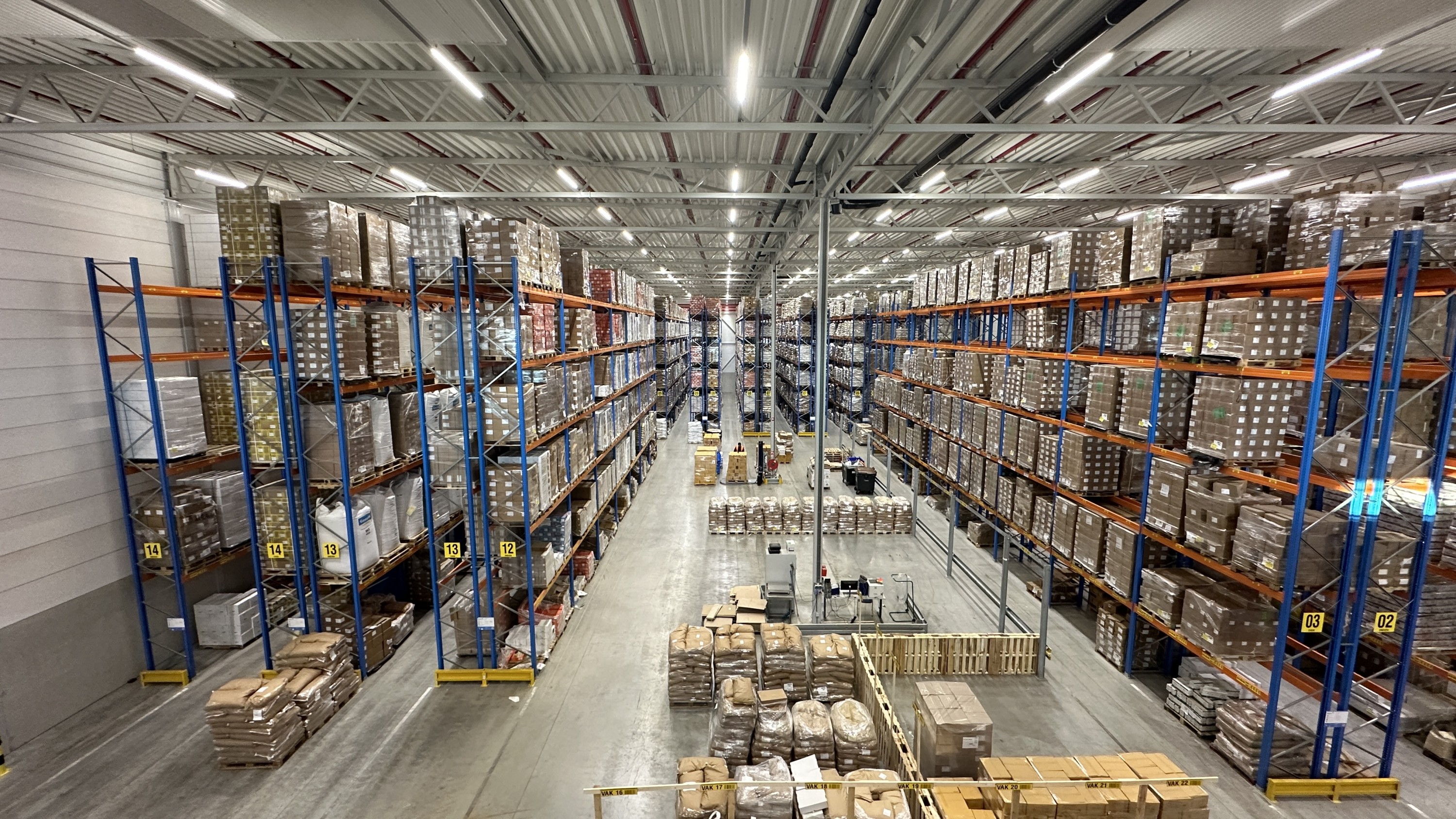 De thans aanwezige stellingen (smalle gangen, circa 5000 euro pallets), de aanwezige koelinstallatie en het camerasysteem worden door de huidige huurder ter overname aangeboden.