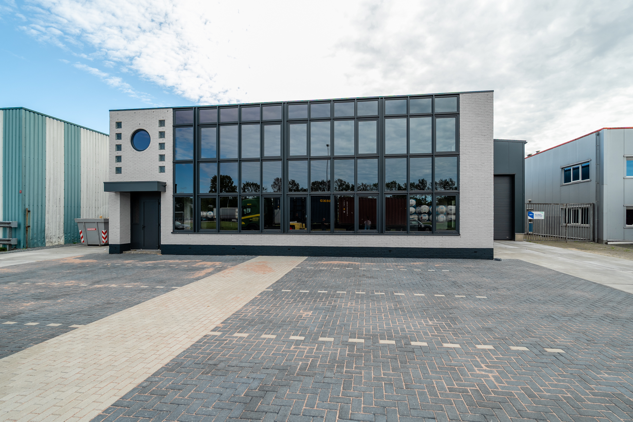 – Gevelpartijen bestaande uit metselwerk en sandwich panelen;