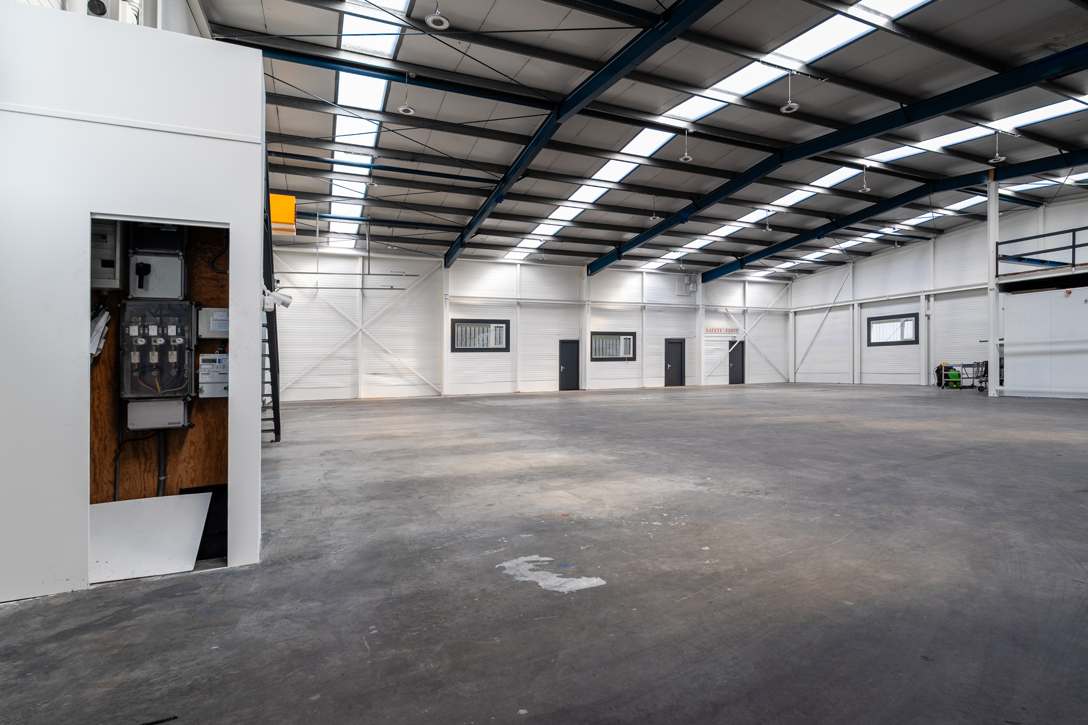 – Onderheide betonvloer met draagkracht van 1.500 kg/m2;