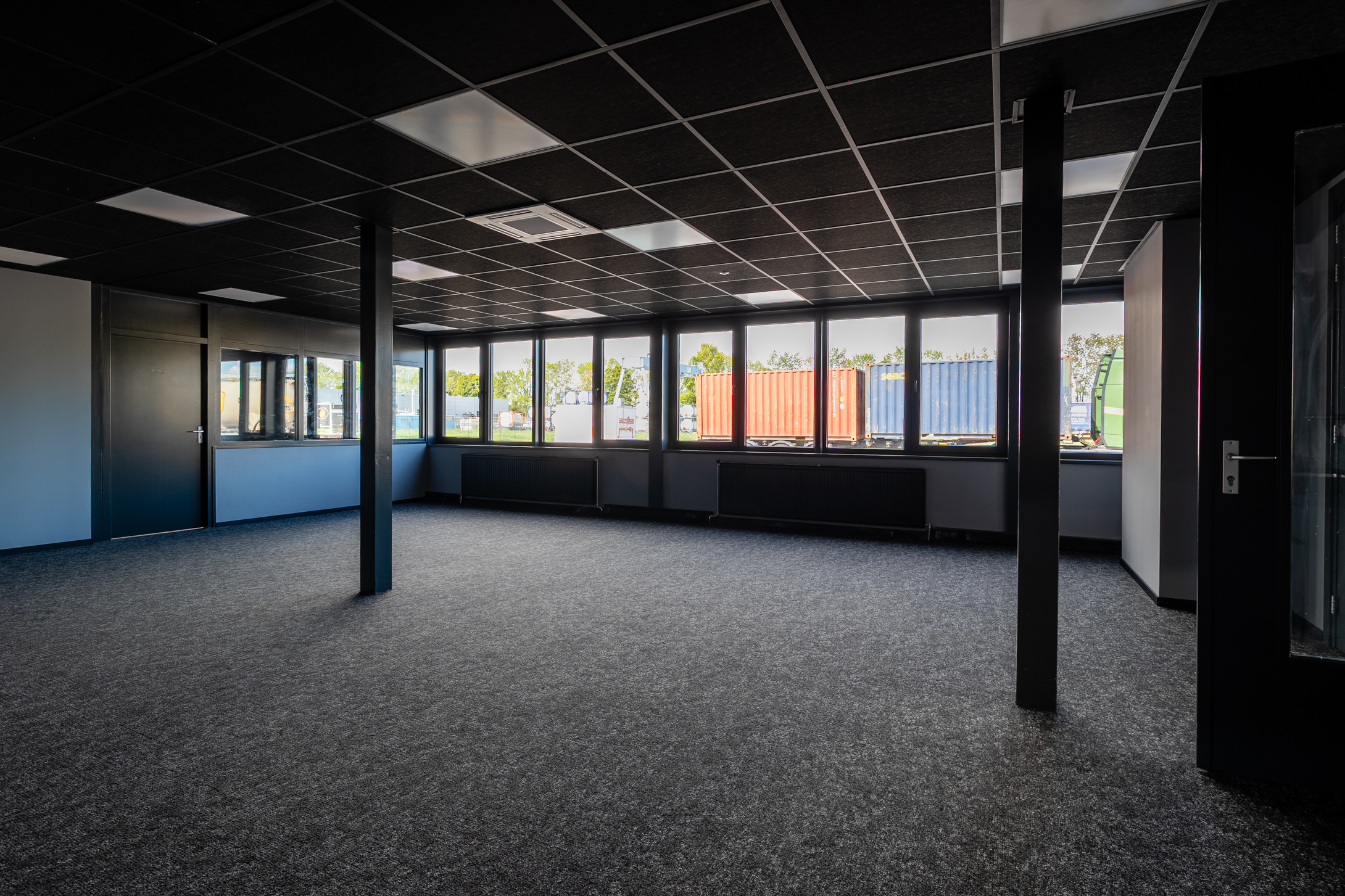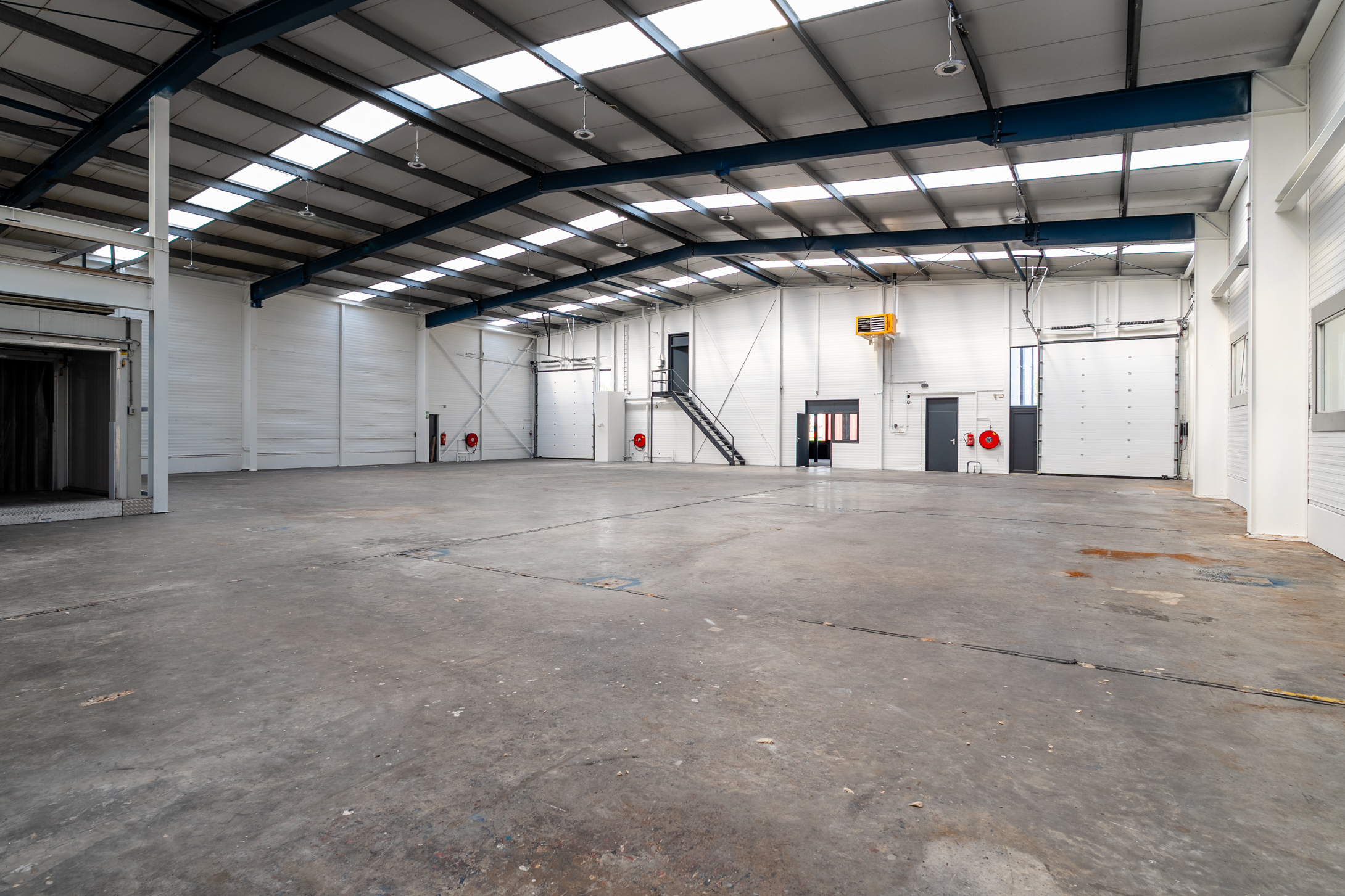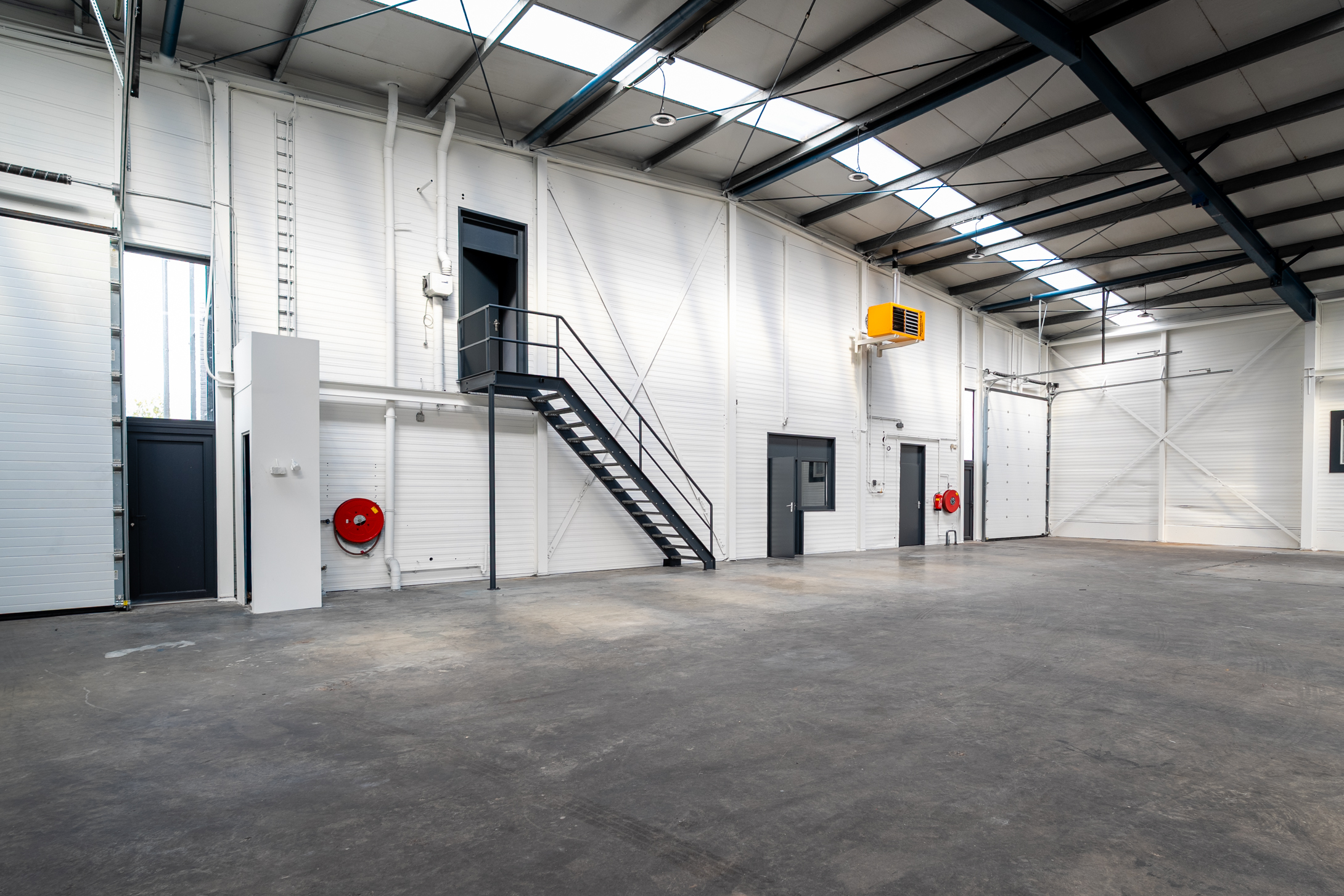 – Twee overheaddeuren van ca 3.5 meter breed en 4.2 meter hoog;